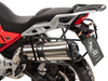 HEPCO&BECKERs standard side carriers are firmly bolted to the motorcycle. All normal hard lugagge cases from Hepco & Becker fit this carrier. The cases are fastened to the carrier by means of a quick release fastener. For this purpose, an aluminum adapter is required which is normally included within the delivery of the case. (Item number: 700114) This aluminum adapter is screwed to the rear right and left of the carrier and offer the holder for the luggage lock.