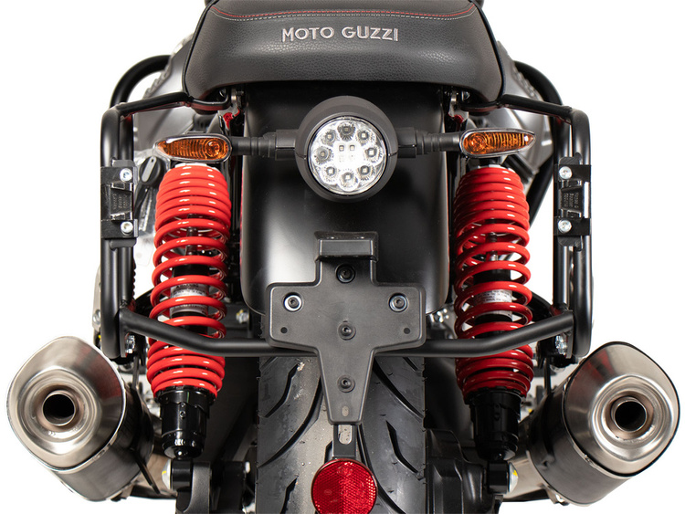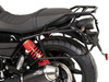 HEPCO&BECKERs standard side carriers are firmly bolted to the motorcycle. All normal hard lugagge cases from Hepco & Becker fit this carrier. The cases are fastened to the carrier by means of a quick release fastener. For this purpose, an aluminum adapter is required which is normally included within the delivery of the case. (Item number: 700114) This aluminum adapter is screwed to the rear right and left of the carrier and offer the holder for the luggage lock.