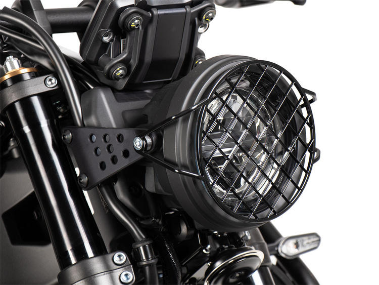 Our Hepco&Becker headlight grill keeps the light protected and also adds an great off-road look.