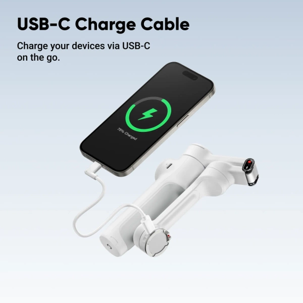 Kijek do selfie, statyw i powerbank, wszystko złożone w jednym kompaktowym narzędziu. Dzięki 10 godzinom pracy na baterii możesz nagrywać cały dzień bez konieczności ładowania.
