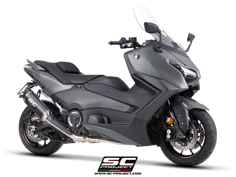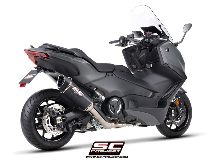 Każdy szczegół został zaprojektowany tak, aby zapewnić autentyczne wrażenia z jazdy SC-Project : dzięki hydroformowanemu asymetrycznemu wylotowi tłumika z włókna węglowego SC1-R dźwięk dwucylindrowego silnika Yamahy zostanie ulepszony dzięki głębokim, agresywnym tonom , wynoszącym 97 dB przy 4400 obr./min.