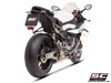 Absolutnie najwyższa jakość wykończenia zewnętrznej tulei (dostępnej w dwóch opcjach: ultralekki tytan lub włókno węglowe ), spawanie metodą TIG ręcznie w bezpiecznym środowisku, okrągły i obszerny wylot tłumika , a także niezwykle agresywna tytanowa siatka na wylocie: wszystkie te elementy to czysta przyjemność dla wyglądu motocykla . Wersja tytanowa posiada wysokiej jakości logo grawerowane laserowo; wersja z włókna węglowego posiada cenną aluminiową nitowaną płytkę , taką samą jak w układach wydechowych MotoGP i Moto2, produkowanych przez SC-Project Reparto Corse .