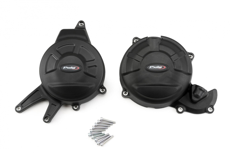 Pokrywy dekli silnika oraz alternatora PUIG dodatkowo zabezpieczają motocykl w przypadku szlifu. Wersja z wyścigową homologacją FIM na rok 2024. Lekko, ale wytrzymała, 4 mm konstrukcja z polipropylenu chroni kluczowe elementy silnika. Stanowi idealne dopełnienie innych elementów ochrony (crash padów, protektorów osi). Pokrywy cechuje estetyczne, czarne wykończenie, idealne dopasowanie oraz łatwy montaż na istniejące elementy motocykla.
