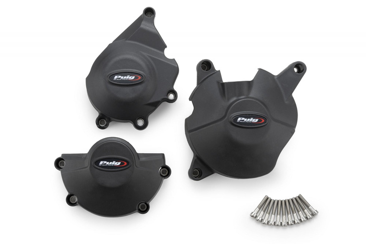Pokrywy dekli silnika oraz alternatora PUIG dodatkowo zabezpieczają motocykl w przypadku szlifu. Lekko, ale wytrzymała, 4 mm konstrukcja z polipropylenu chroni kluczowe elementy silnika. Stanowi idealne dopełnienie innych elementów ochrony (crash padów, protektorów osi). Pokrywy cechuje estetyczne, czarne wykończenie, idealne dopasowanie oraz łatwy montaż na istniejące elementy motocykla.