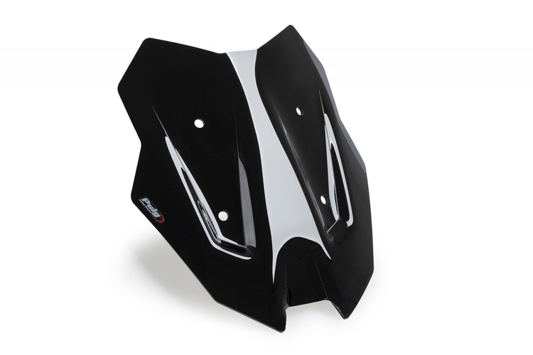 Sportowa szyba PUIG - z charakterystycznym, dodatkowym garbem w środkowej części poprawiającym aerodynamikę (double bubble, podwójny garb). Zaprojektowana w wirtualnym tunelu aerodynamicznym. Wysoka jakość optyczna (akryl). Mocowana w miejsce fabrycznej, za pomocą fabrycznych śrub. Posiada niemiecki atest TUV.