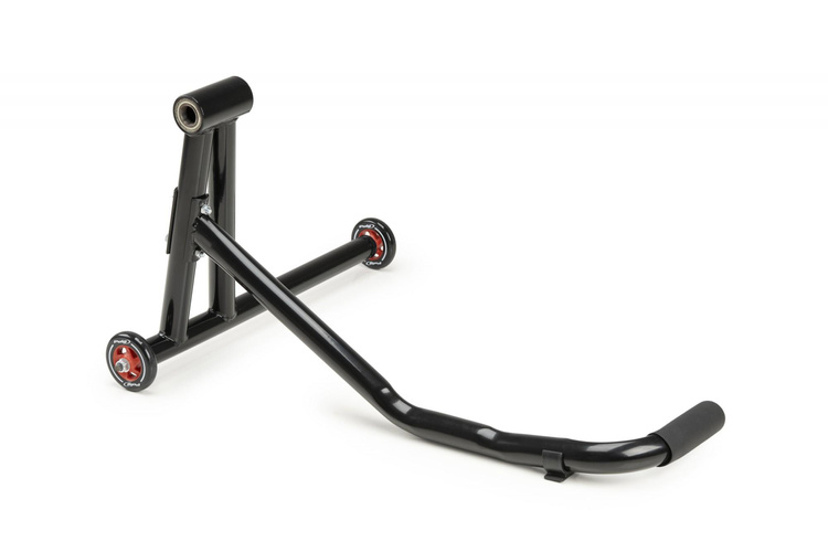 Podnośnik motocyklowy do tylnego koła. Wersja do motocykli z monowahaczem. Niezastąpiony do prac garażowych i warsztatowych oraz zimowania motocykla.