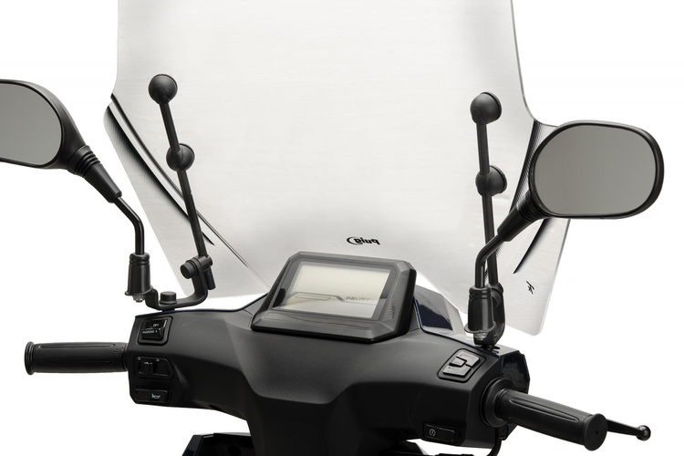 Linia szyb T. X. to nowoczesny design szyby czołowej do skutera. Zapewnia skuteczną ochronę przed wiatrem, deszczem i mrozem, czyli bardziej komfortowe podróżowanie, zachowując ciekawy wygląd skutera. W komplecie zestaw mocujący do danego modelu skutera. Prosty montaż. Szyba posiada niemiecki atest TUV.