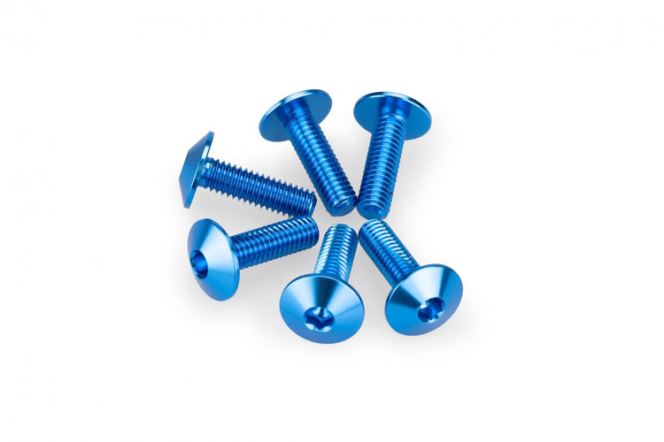 Kolorowe śrubki do szyb i owiewek zapewniają unikalny wygląd motocykla. Śrubki w rozmiarze M6x20. Średnica główki 13,9 mm. Cena za 1 komplet - w opakowaniu 6 śrubek.