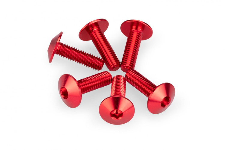 Kolorowe śrubki do szyb i owiewek zapewniają unikalny wygląd motocykla. Śrubki w rozmiarze M6x20. Średnica główki 13,9 mm. Cena za 1 komplet - w opakowaniu 6 śrubek.