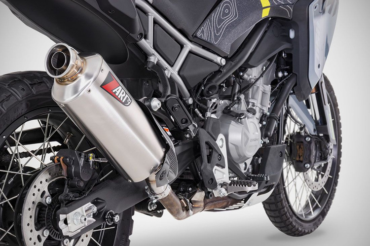 Motocykl  CFMOTO® 450MT , znany ze swojej wszechstronności i dynamicznych osiągów, jest teraz gotowy na dalsze udoskonalenie dzięki amortyzatorowi Zard typu slip-on . Zaprojektowany, aby w pełni wykorzystać potencjał tego bestsellerowego motocykla, jest  ręcznie wykonany we Włoszech z użyciem wyłącznie najlepszych materiałów. Dostępny w  wersji wyścigowej i  homologowanej E5+ , amortyzator typu slip-on jest wykonany ze stali nierdzewnej AISI 304 , ma satynowe wykończenie i osłonę termiczną z włókna węglowego .