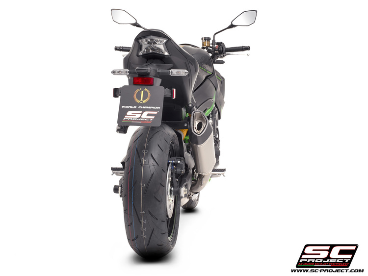 Tłumik SC1-R reprezentuje najwyższy poziom technologiczny, jaki można zamontować w Kawasaki Z900 . Stworzony z myślą o Mistrzostwach Świata Superbike , oferuje ekstremalną wydajność i wyścigowy wygląd, stworzony specjalnie dla Twojego Z900 . Tytanowy wylot został wykonany metodą hydroformowania , a karbonowa końcówka jest wykonana w autoklawie. Tłumik jest dostępny z zewnętrzną obudową z tytanu lub włókna węglowego . Spawy wspornika i rury wykonane są w technologii TIG , a materiał wygłuszający jest odporny na bardzo wysokie temperatury. Dźwięk jest wyjątkowy, stworzony specjalnie dla czterocylindrowego silnika Kawasaki . Tłumik posiada homologację EURO5 . Jest wyposażony w dużą, wykonaną w autoklawie, karbonową osłonę , która całkowicie zastępuje oryginał.