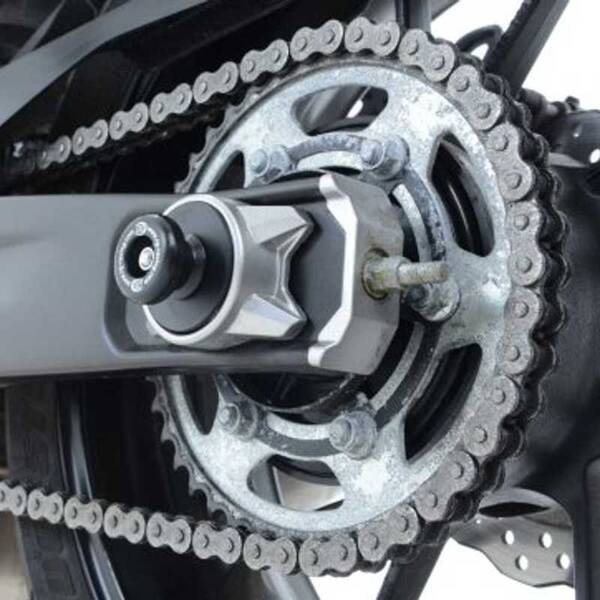 Slidery tylnej osi (Spindle Sliders) - chronią nie tylko wahacz i koło przed uszkodzeniami podczas upadku, ale również idealnie nadają się jako rolki do podnoszenia tylnego koła motocykla. Wykonane z wysokiej gęstości nylonu tak samo jak pozostałe crash pady/slidery R&G.