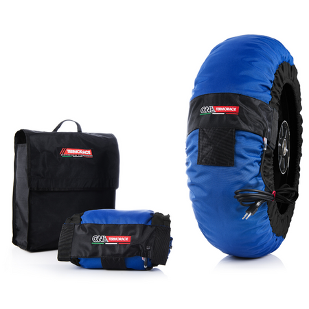 Zestaw dwóch koców grzewczych na przednie oraz tylne koło, obowiązkowe wyposażenie każdego miłośnika wyścigów. Łatwa obsługa i solidna jakość - wyrób Europejski. Niezbędne by móc korzystać od początku z pełnego potencjału motocykla na torze bez uprzedniej rozgrzewki przez kilka okrążeń i tym samym niszczenia zimnych opon.
