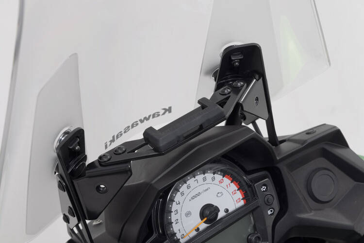 - Antywibracyjna podstawa mocowana w punktach montażowych szyby (bez ingerencji w konstrukcję motocykla)
