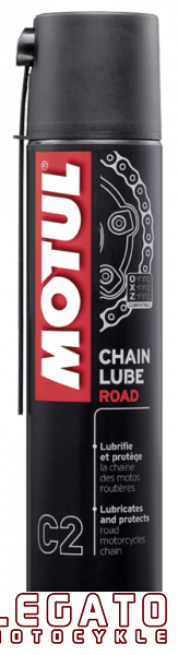 MOTUL C2 CHAIN LUBE ROAD Bezbarwny smar o wysokiej przyczepności do smarowania łańcuchów w motocyklach ulicznych i go-kartach.