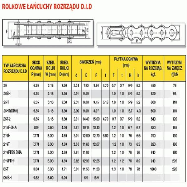 • Łańcuszek rozrządu DID219H-1 (60 ogniw)