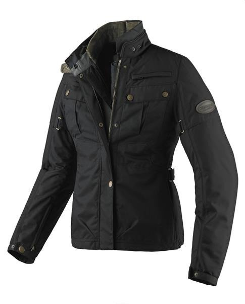 - warstwa 1: bardzo wytrzymały materiał o wysokiej odporności na ścieranie i przecięcia (odporność na przetarcie 400 cykli Martin Dale, UNI EN ISO 388/2004), krótki i dopasowany do kobiecej sylwetki krój kurtki zapewnia wyjątkowy komfort jazdy, 220 gr /m2 laminowana tkanina poliestrowa,80 gr /m2 meshowa tkanina wewnętrzna z poliestru, 2 regulowane i zamykane otwory wentylacyjne na klatce piersiowej, 4 zewnętrzne kieszenie z przodu kurtki, 1 duża kieszeń z tyłu kurtki, zamek YKK, guziki Fiocchi