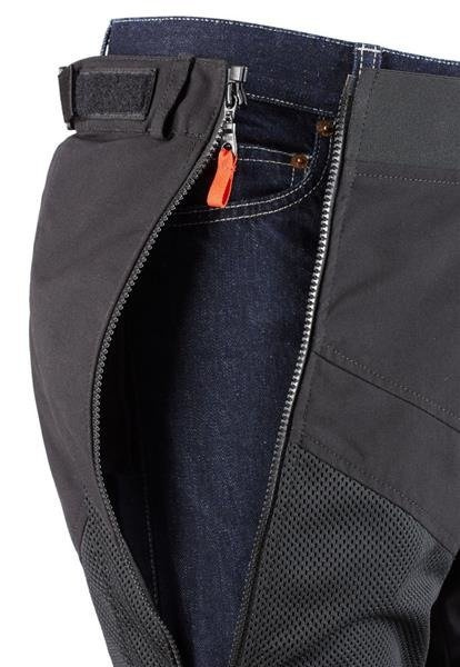 Mesh Leg to praktyczne spodnie, które mogą być używane zarówno na spodnie codzienne, dzięki 2 suwakom na całej długości oraz jako niezależne spodnie motocyklowe cechujące się bardzo dobrą wentylacją i ochroną.
