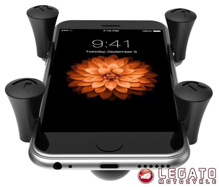 - Uchwyt z bardzo precyzyjnym mechanizmem sprężynowym rozszerza się i kurczy, idealnie dopasowując się do wymiarów urządzenia.