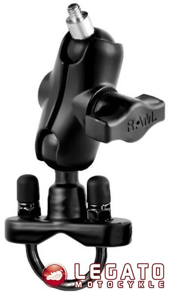 Uchwyt montowany do ramy kierownicy. Jest zintegrowany z ramieniem o długości 2.38 cala oraz z RAM-B-237U - uniwersalną podstawą do aparatu lub kamery. Składa się z gumowej kuli o średnicy 1 cala połączonej z ¼ calowym gwintem do montażu kamery. Gwint pasuje do większości standardowych aparatów i kamer.