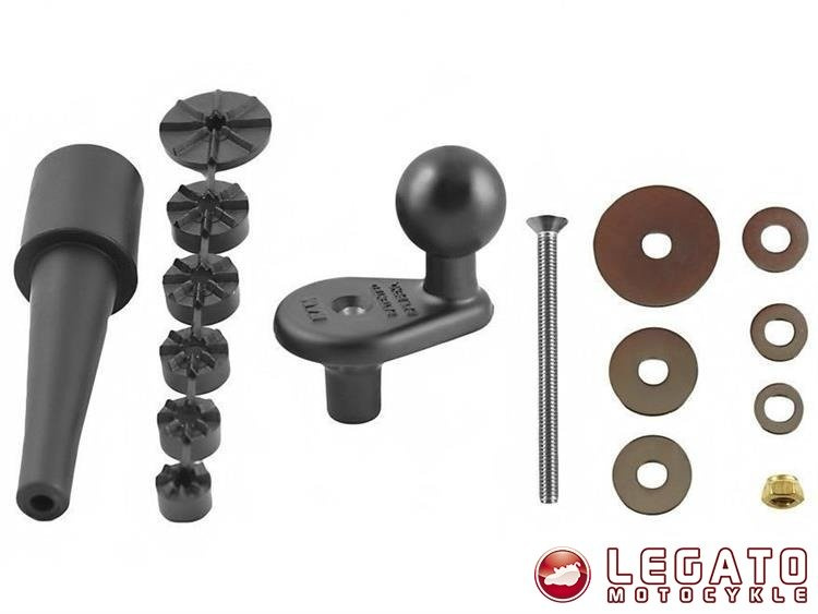 RAM-B-342U podstawa montażowa z 1 calową głowicą obrotową montowana w trzon widelca w motocyklu jest jednym z najlepszych sposobów montażu niewielkich urządzeń elektronicznych na motocyklu. Podstawę wystarczy umieścić w otworze trzonu widelca i dokręcić śrubę. RAM-B-342U jest zaprojektowany w taki sposób, aby pasował do cylindrycznego otworu trzonu widelca motocyklowego o wymiarach od 0.5 do 1.10 cala w następujących przedziałach: