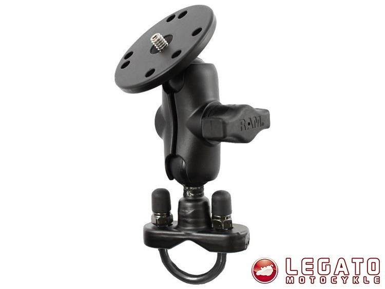 Uchwyt montowany do ramy kierownicy. Jest zintegrowany z ramieniem o długości 2.38 cala oraz z RAM-B-202AU - gumową kulą o średnicy 1 cala podłączoną z płaską, okrągłą podstawą o średnicy 2,5 cala zintegrowaną z ¼ -calowym gwintem do montażu kamery lub aparatu. Gwint pasuje do większości standardowych aparatów i kamer. Okrągła podstawa dodatkowo zapewnia stabilność zamontowanego urządzenia.