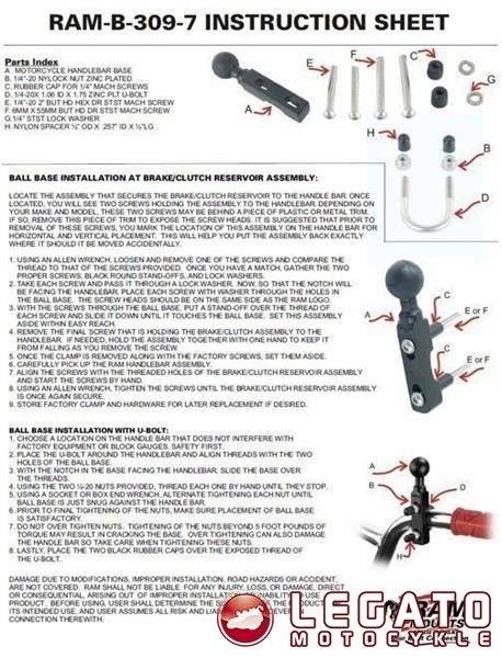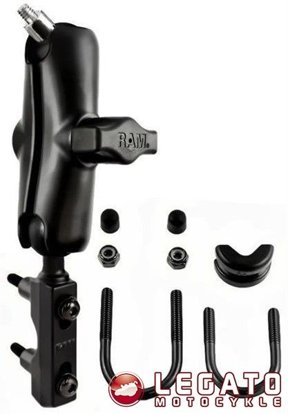 RAM-B-174-237U uchwyt montowany do ramy kierownicy lub do podstawy hamulca / sprzęgła w motocykludo montażu kamery lub aparatu. Jest zintegrowany z 1-calową głowicą obrotową, która umożliwia montaż ramienia z uchwytem oraz daje możliwość regulacji uchwytu w różnych kierunkach.