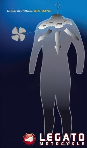 Dzięki wbudowanemu wentylatorowi o wysokiej mocy Twój kombinezon schnie szybciej, spowalnia rozwój nieprzyjemnych zapachów, oraz przedłuża żywotność Twoich ubrań. Jego silna budowa i hak ze stali nierdzewnej może unieść nawet do 45 kilogramów.
