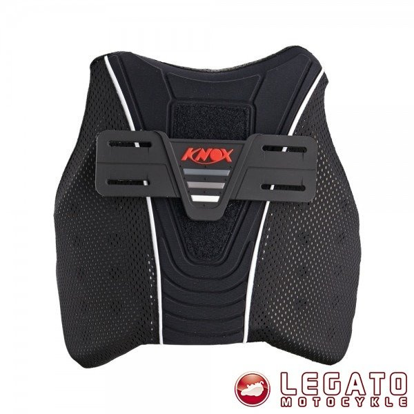 Ochraniacz klatki piersiowej jest oddzielnym protectorem zatwierdzonym certyfikatem CE Może być dołączany do jakiegokolwiek protektora pleców KNOX Jednoczęściowy wyprofilowany do klatki piersiowej tak aby był lekki i wygodny System łączenia pozwala na szybkie i bezpieczne przymocowanie do pasków ochraniacza pleców.