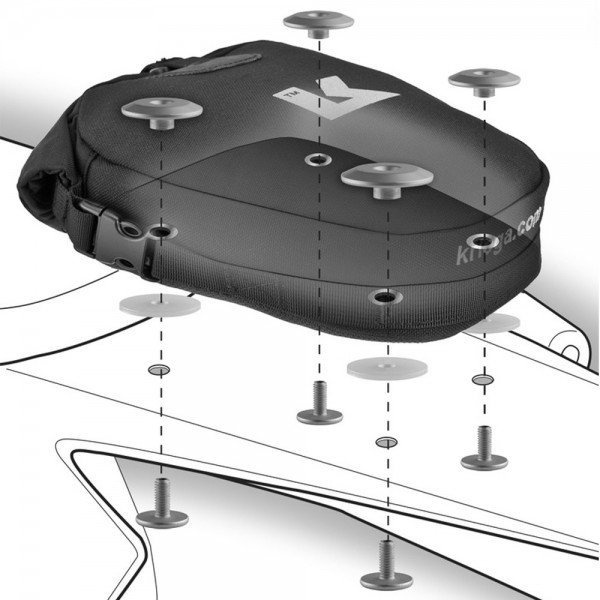 100% wodoszczelna montowana za pomocą śrub do tylnego błotnika wykonana z bardzo mocnego materiału Cordura 1000D. 2,5 L pojemności - idealna na apteczkę, małe narzędzia, suche rękawice itp. Innowacyjny system mocowania na aluminiowych śrubach (więcej w instrukcji mocowania).