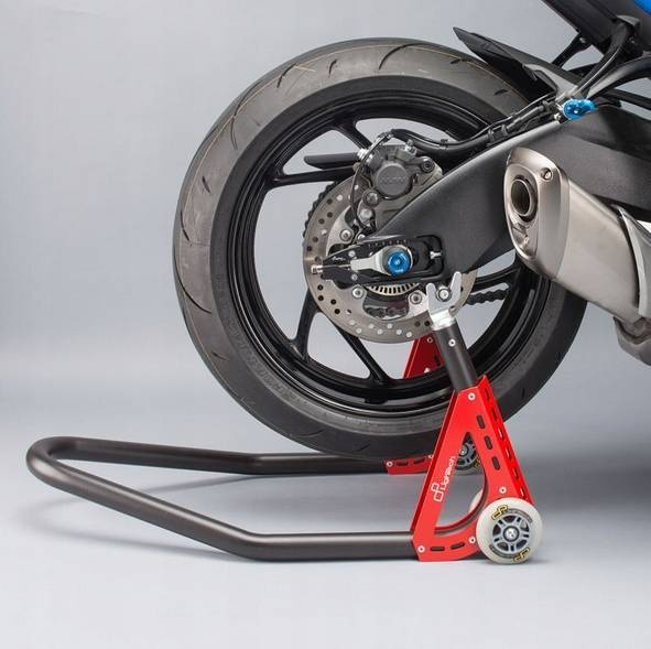 tylnej części motocykla. Wymiany kół, łańcuchów, opon, klocków hamulcowych.
