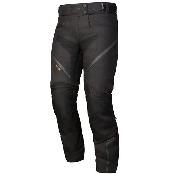 Motocyklowe spodnie damskie Union z elastycznymi wstawkami nad kolanami. Mają system rozbudowanej wentylacji z dwoma kanałami przepływu powietrza. Wyposażone w wypinaną membranę i ochraniacze kolan z regulacją wysokości. Posiadają elementy odblaskowe i kieszenie na ochraniacze na biodrach.