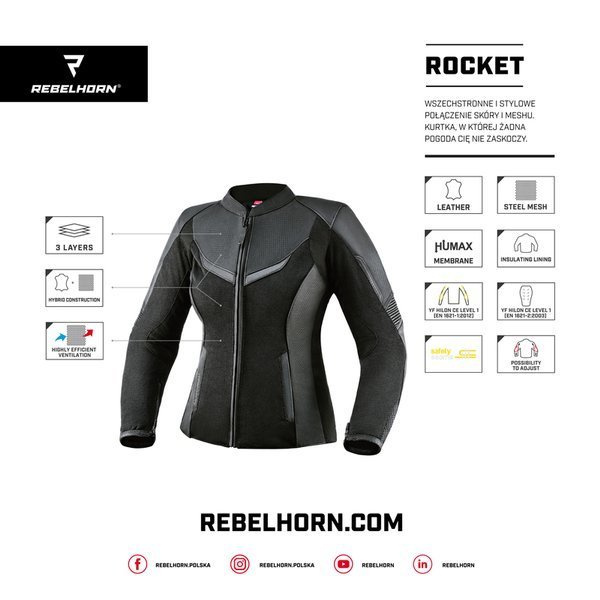 - Kieszeń umożliwiająca zastosowanie ochraniacza pleców