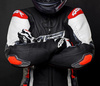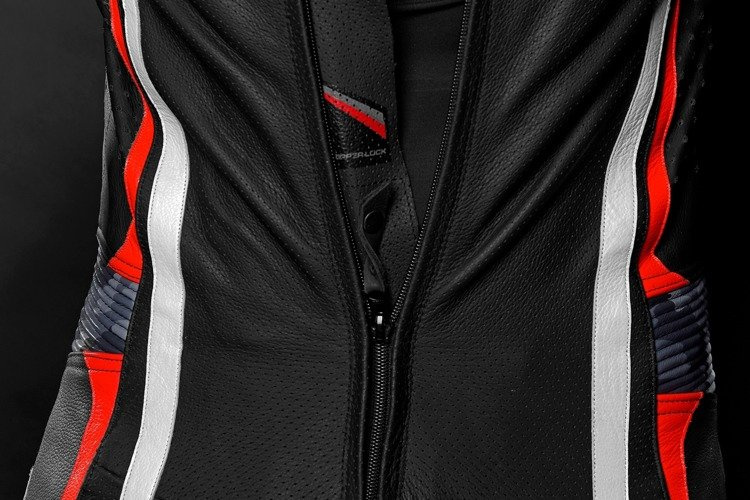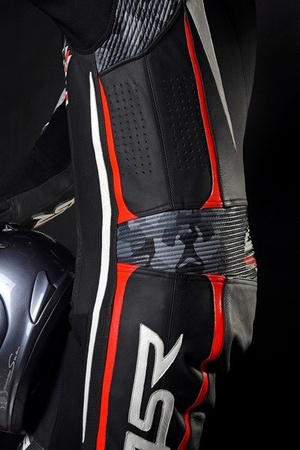 Bezszwowy strecz w rozkroku i pod pachą umożliwia motocykliście zajęcie ekstremalnej pozycji bez jakichkolwiek problemów a dzięki swojej elastyczności i wygodzie użyty jest również na manszetach rękawów.